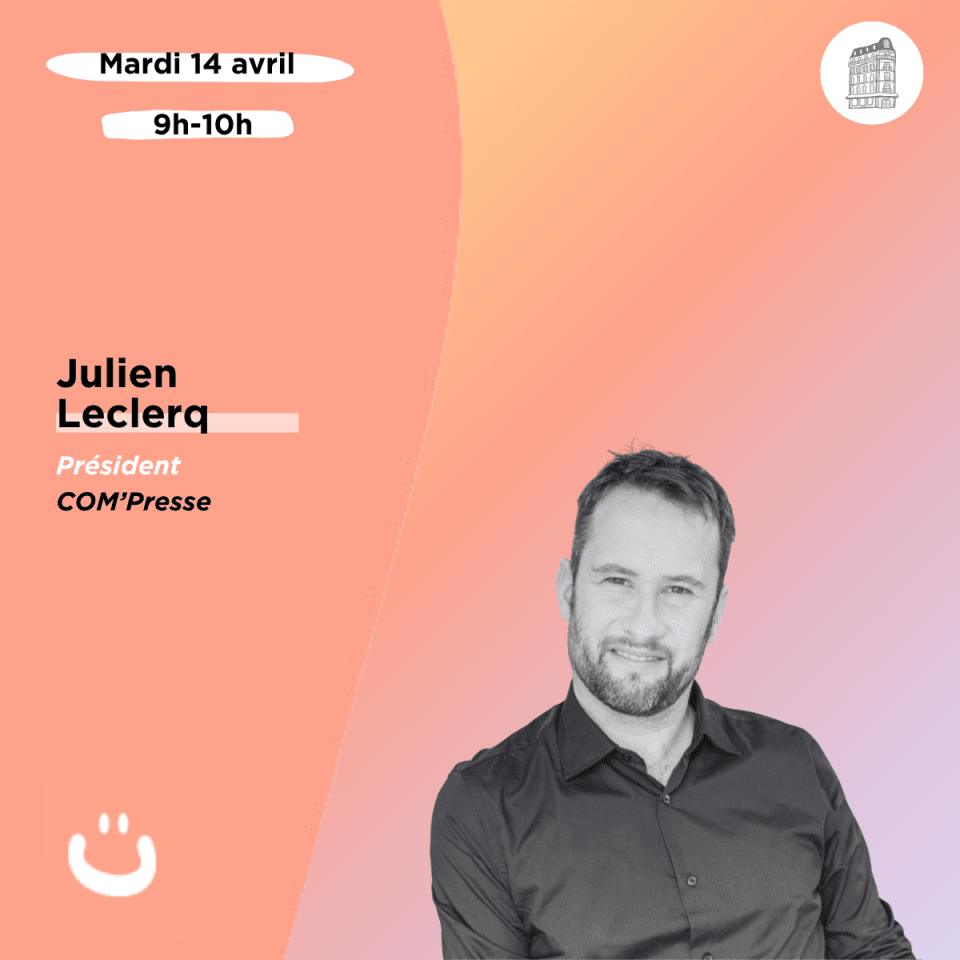 Nous vous proposons une rencontre unique avec Julien Leclercq, Président de COM’Presse. Avec lui nous partagerons les méthodes de travail de cette agence de presse « nouveau format », entreprise entrepreneuriale familiale, devenue la première agence de presse magazine de France, qui réalise des magazines et sites clés en mains pour des groupes médias et de grandes entreprises (Pleine Vie, Top Santé, Rotary Mag, Cuisine Actuelle, Marmiton magazine, Turbo.fr, Science et Vie…). Comment proposer des sujets ? Comment sont choisis les contenus ? Comment mieux travailler ensemble avec une équipe qui a grandi et compte aujourd’hui d’une centaine de rédacteurs entre Astaffort et Paris ?